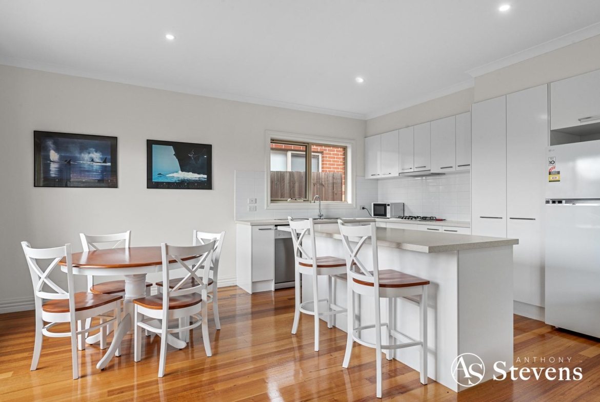 The home’s light-filled interior features high ceilings, open-plan living including a contemporary kitchen with stainless-steel appliances, central island and ample storage. This spacious area is designed for relaxed everyday living that opens onto a decked alfresco area and private courtyard – an ideal spot for entertaining friends and family. There are three bedrooms including the master with walk-in robe and ensuite, and there are built-in robes in the other two. A central bathroom includes a bath and shower while extras such as a double lock-up garage, ducted heating and cooling throughout as well as split-system heating and cooling in the family area, and a European-style laundry, add to the appeal.