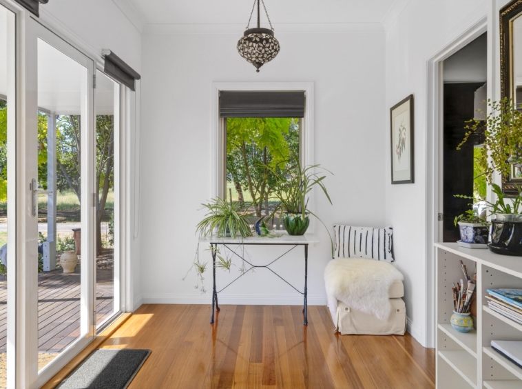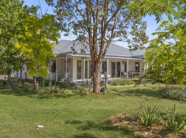 Set behind electronic gates and framed by a picturesque tree-lined driveway, this beautifully maintained Hardie-plank weatherboard residence delivers the perfect blend of relaxed country living, modern comfort and exceptional accessibility.