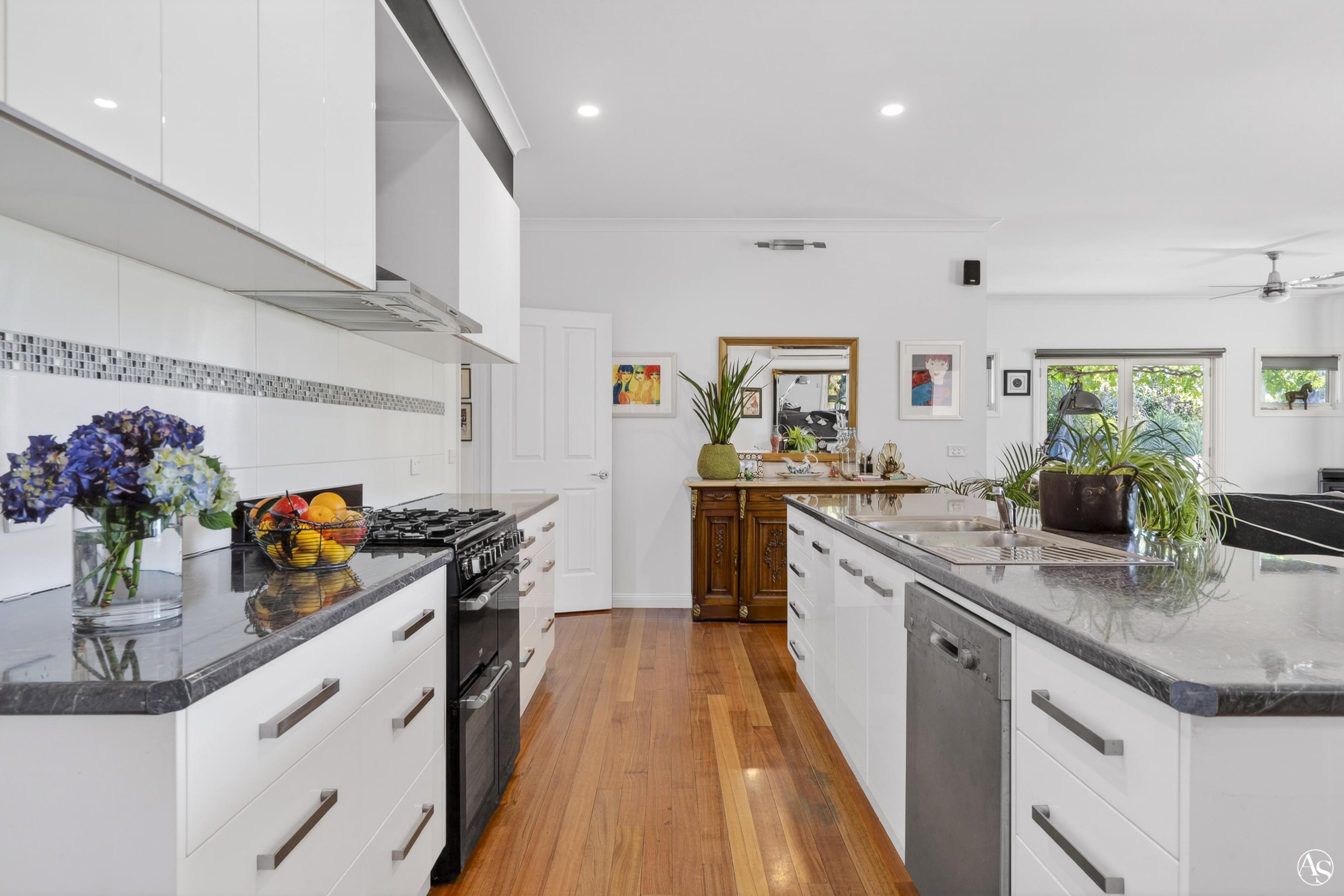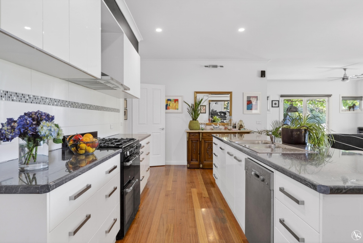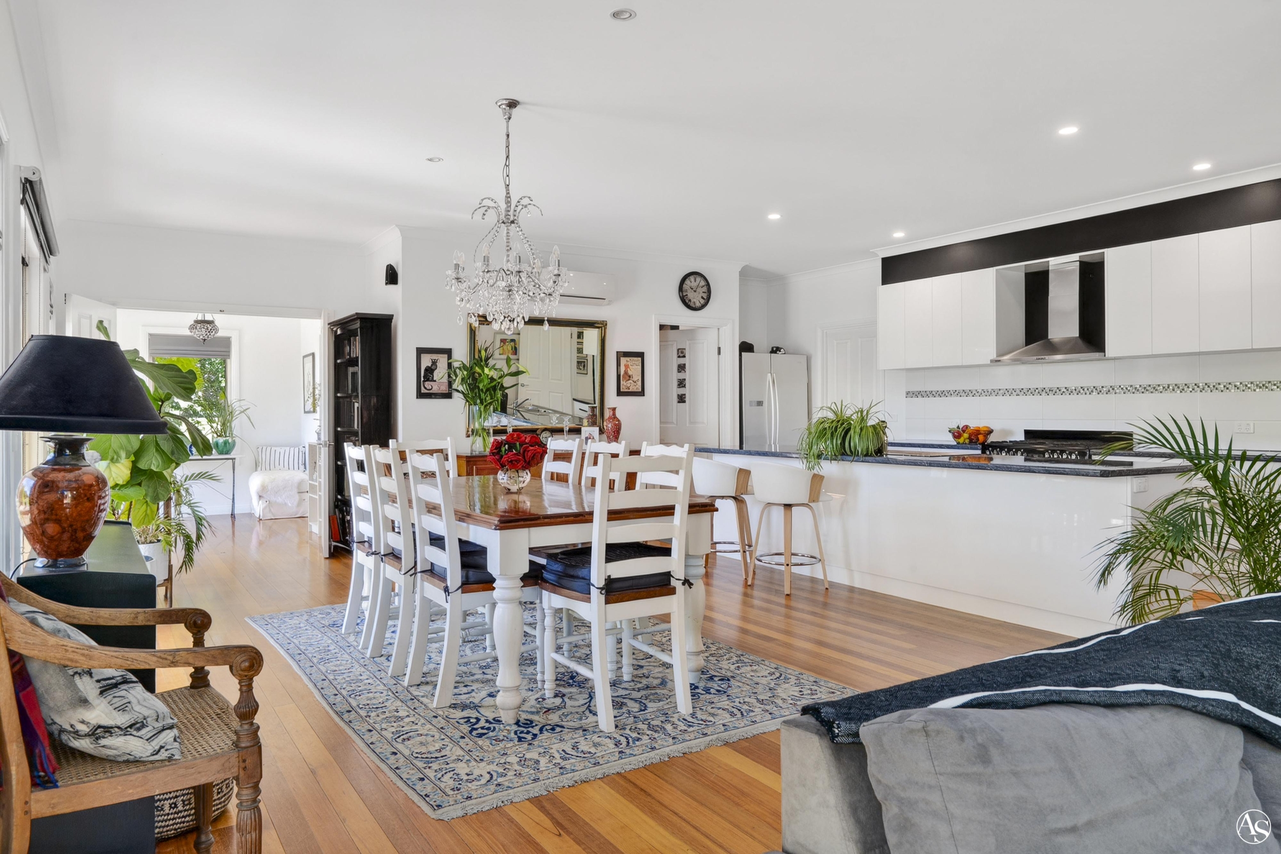 • Open-plan kitchen, meals and family room with polished timber floors