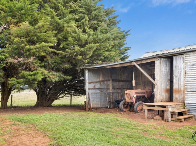 Enjoy sweeping views extending to the eastern boundary, leading into a tranquil valley that includes your own section of Deep Creek, complete with vibrant waterholes. The property features a three-bay hay shed, shearing shed, machinery shed, sheep yards, and a plentiful water supply from bore water, dams, and rainwater tanks.