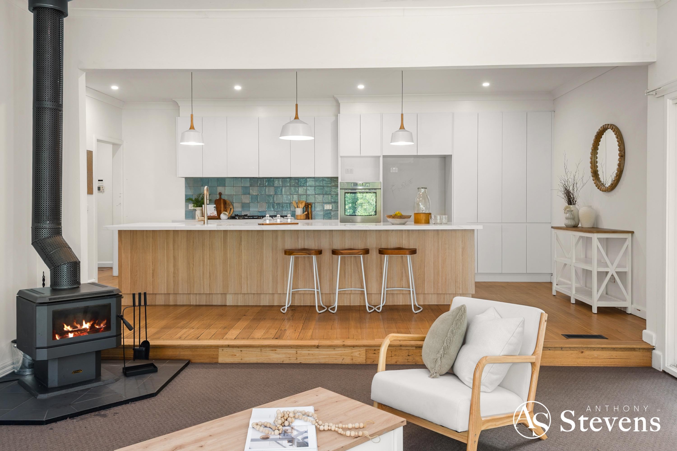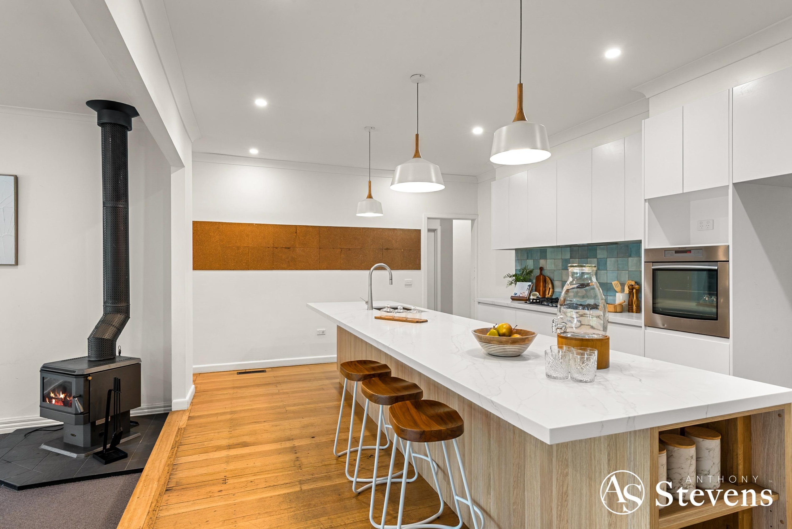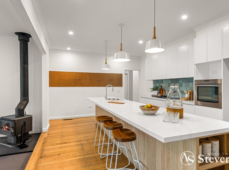The home sits on a generous 1740sqm block with established gardens creating privacy and a beautiful green outlook from every window. Inside, the layout is relaxed and practical, offering four comfortable bedrooms and a central bathroom. The kitchen is a standout, stone benchtops, stainless steel appliances and a warm, modern feel that works perfectly for everyday cooking and entertaining.