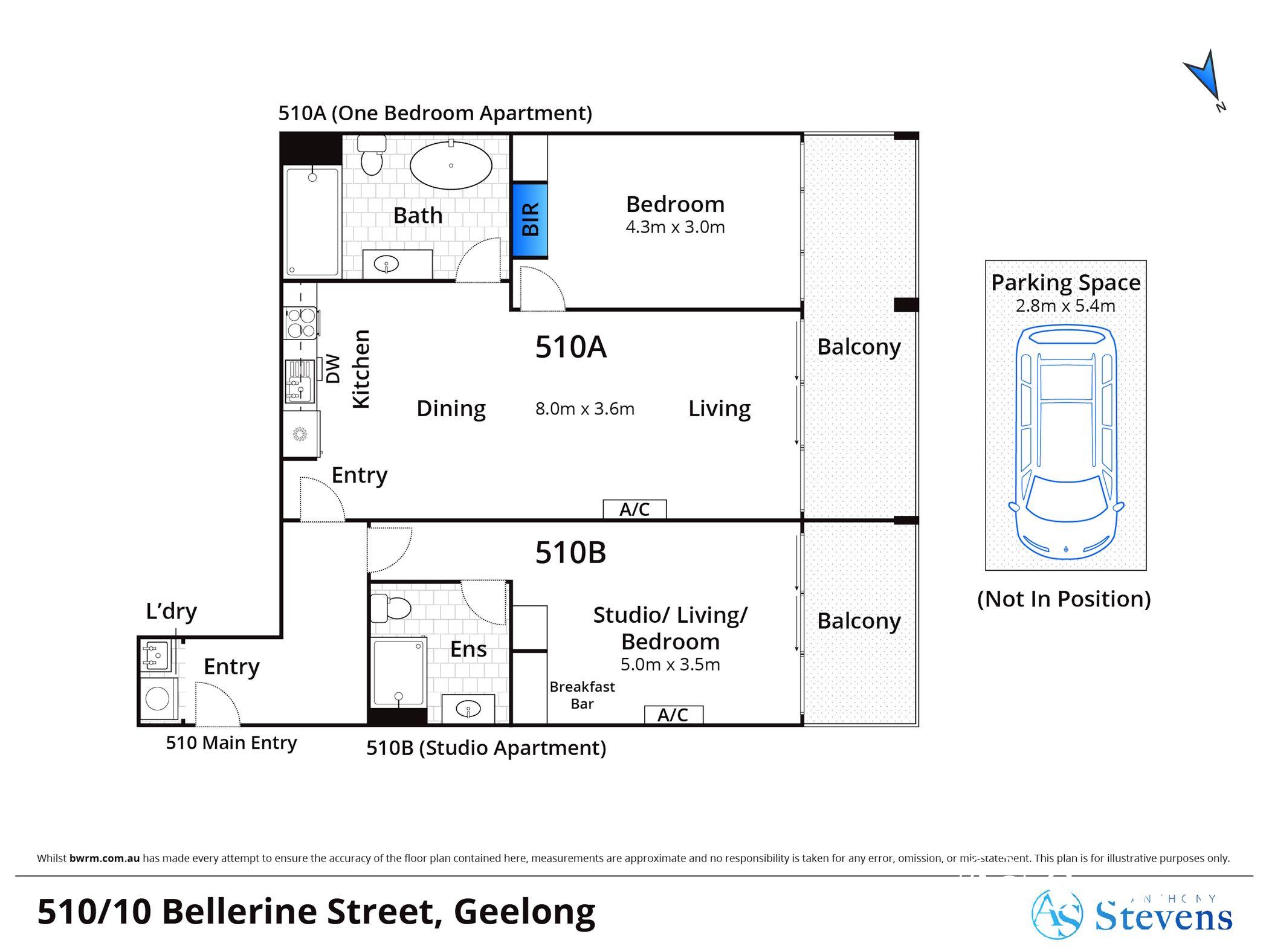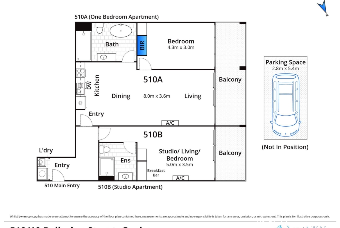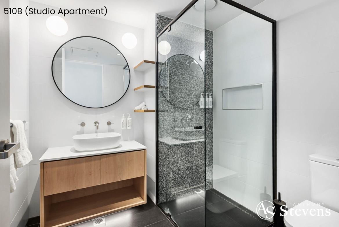 Apartment 510 is uniquely configured as two self-contained residences on one title, maximising flexibility and rental appeal: