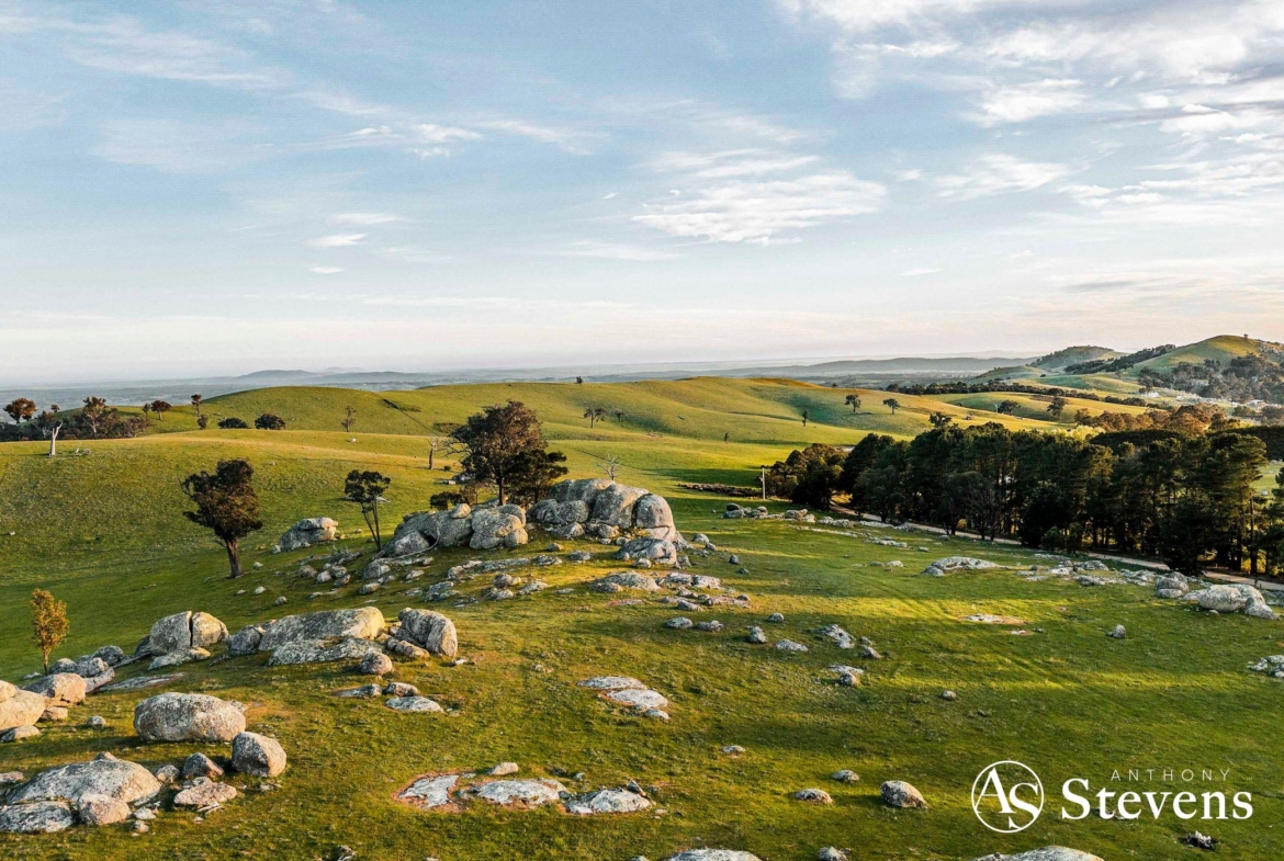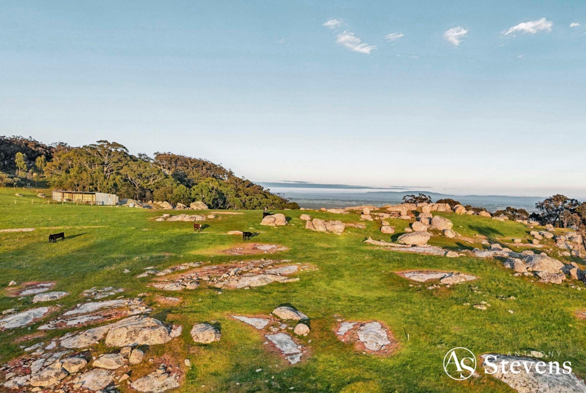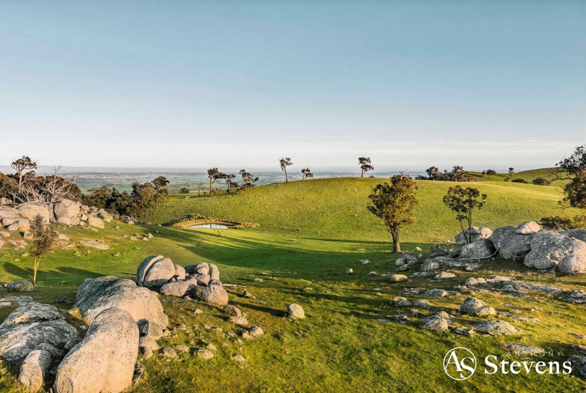 Together, the two lots offer approximately 170 acres (68.89 Ha) of diverse, picturesque countryside, combining elevated building sites and natural rock formations – all within easy reach of Heathcote and Lancefield (15 minutes) and Kyneton (25 minutes); beautiful country towns renowned for their wines, gourmet foods and friendly farmers markets.