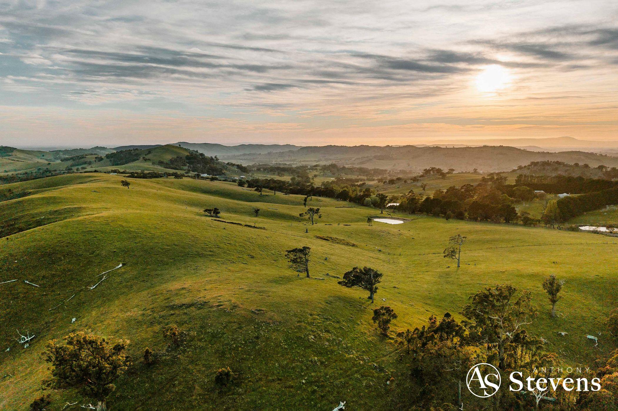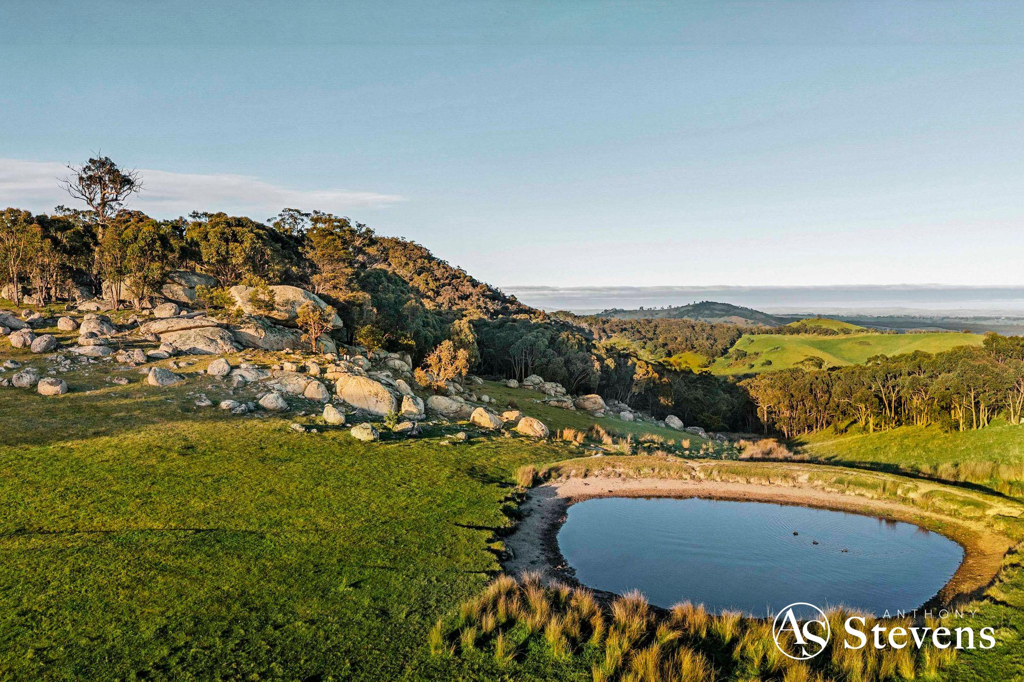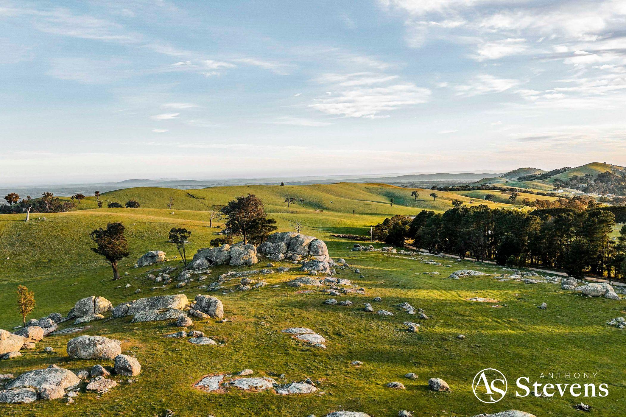 Together, the two lots offer approximately 170 acres (68.89 Ha) of diverse, picturesque countryside, combining elevated building sites and natural rock formations – all within easy reach of Heathcote and Lancefield (15 minutes) and Kyneton (25 minutes); beautiful country towns renowned for their wines, gourmet foods and friendly farmers markets.