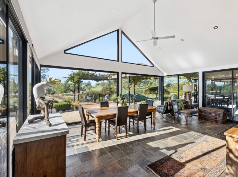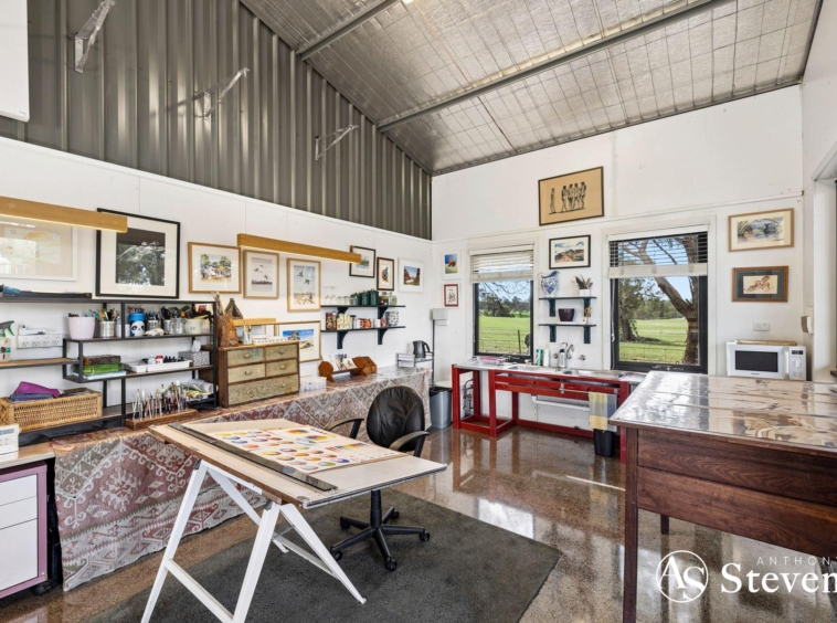 Lifestyle amenities are comprehensive and unusually well resolved. In addition to the heated swimming pool and tennis court, the estate includes an artist’s studio (insulated and double-glazed windows), multiple high-quality sheds and the signature “Major’s Crossing”. Positioned on a prominent hilltop overlooking the Coliban River valley, “The Major’s Crossing” is a fully serviced retreat designed for elevated entertaining and private escape.